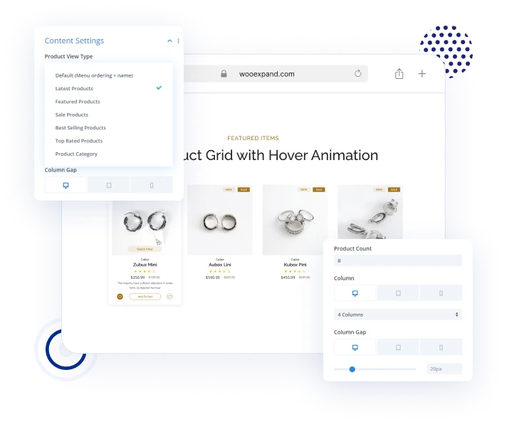 Woo Expand Product Grid module empowers your online store with an interactive grid layout by choosing from a vast number of Woo elements. Also, with our module, you have no limitations when it comes to creativity and uniqueness.